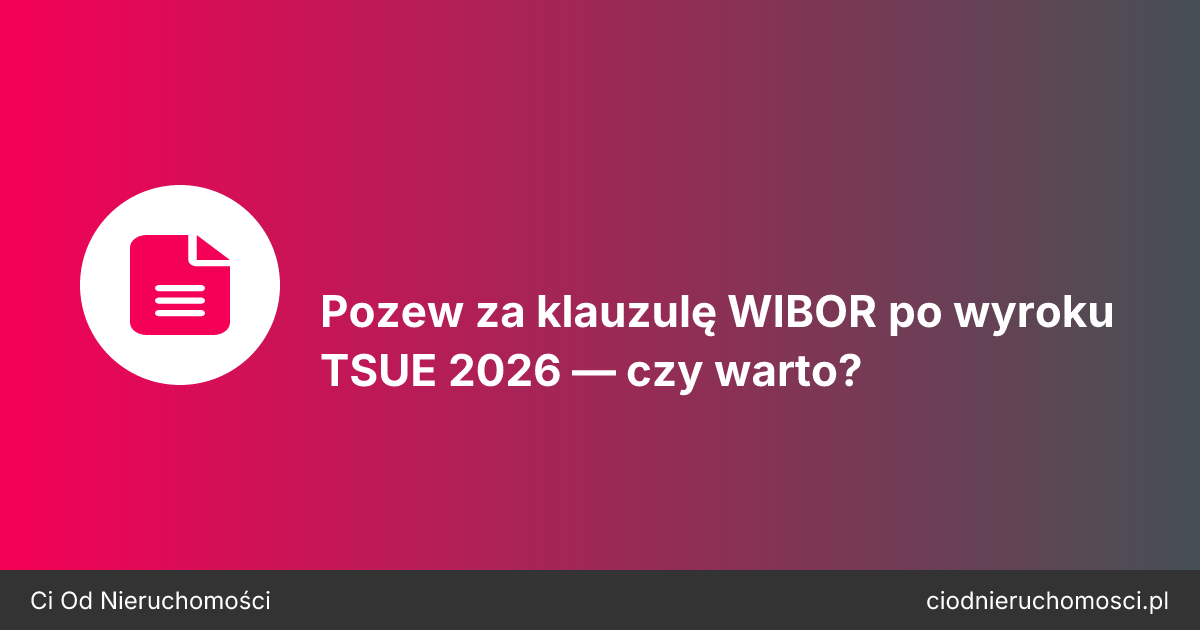 Wyrok TSUE C-471/24 z 12 lutego 2026 roku nie jest "frankowiczami 2.0". TSUE potwierdził, że metodologia WIBOR jest legalna, a sądy krajowe nie mogą jej podważyć. To, co pozostawił — to indywidualna ocena obowiązków informacyjnych banku. W artykule pokazuję, co realnie zmienił wyrok, kto ma szansę wygrać pozew, ile to kosztuje i jakie są alternatywy (spoiler: często szybsze i tańsze).