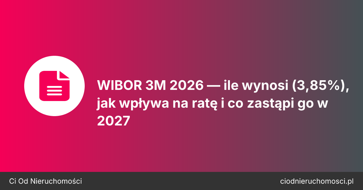 WIBOR 3M 2026 — ile wynosi (3,85%), jak wpływa na ratę i co zastąpi go w 2027